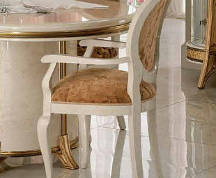 Мягкий стул с подлокотниками Melodia фабрики Arredo Classic. Стул выполнен в классическом стиле лучшими итальянскими мастерами и дизайнерами. Стул сделан из высококачественного МДФ в цвете слоновая кость с золотом. Обивка выполнена из ткани категории А.