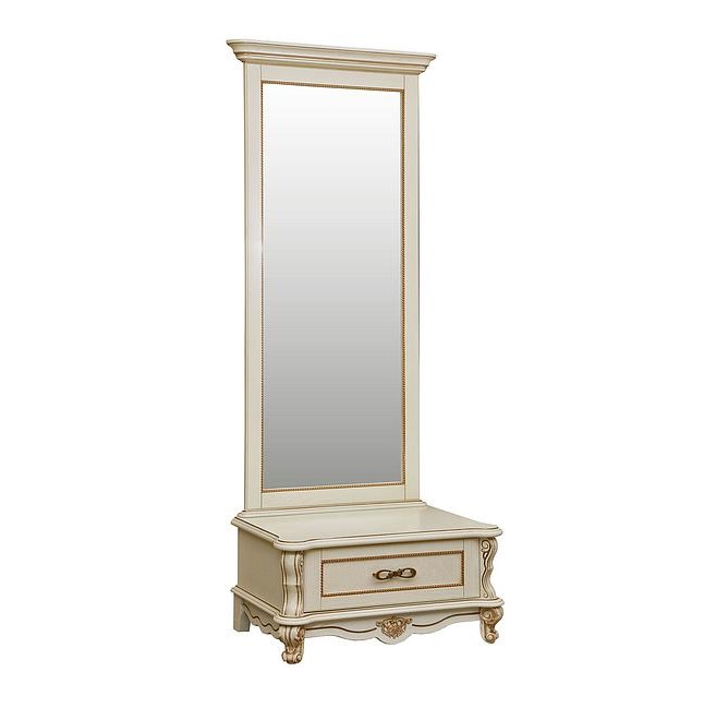 Напольное зеркало Алези выполнено в стиле классика. Изготовлено из экологически чистого массива дуба. Изящные изгибы, стильное обрамление и великолепное качество, всем этим обладает коллекция Алези. Мебель от белорусских производителей славится своим качеством и приемлемыми ценами во всем мире. Мебель коллекции Алези выполнена в цвете слоновая кость с позолотой, и украшена высококачественной и одновременно стильной фурнитурой.