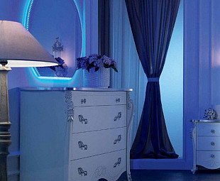 Настенное зеркало с подсветкой Viola. Классическое итальянское зеркало воплощает в себе необычайную красоту и роскошь, элегантность и изысканность. Зеркало оснащено подсветкой. Зеркало Viola выполнено в цвете белый с серебром. Сделана рама зеркала из массива и дополнена шпоном. Великолепное итальянское зеркало Viola дополнит интерьер самого роскошного дома.