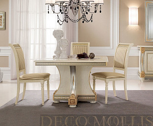 Обеденный квадратный стол Liberty фабрики Arredo Classic. Стол сделан из высококачественного МДФ. Стол выполнен в цвете слоновая кость с добавлением золота. Стол раскладной.