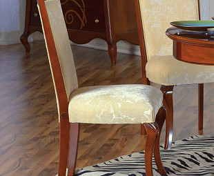 Обеденный стул Capri. Дизайн стул выполнен в классическом стиле, но адоптирован к современному образу жизни. Стул напоминает настоящее произведение искусства в области мебели. Вся мебель коллекции Capri сделана из высококачественного массива дерева и дополнена шпоном. В обработке мебели используются специальные методы, которые придают ей исторический характер. Обивка выполнена из ткани. Стул выполнен в цвете черешня патинированная. Элементы ручной работы, украшающие стул, являются результатом работы профессиональных дизайнеров и мастеров. По этой причине, каждый элемент стул является уникальным, что дает ощущение будто бы мебель выполнена по вашему индивидуальному заказу. Стул коллекции Capri наполнит атмосферу вашего дома изысканностью, элегантностью и принадлежностью сразу к нескольким эпохам.