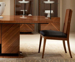 Обеденный стул Opera выполнен в стиле модерн. Стул имеет геометрический узор выполненный из высококачественного шпона ореха, это придает стильный и элегантный вид. Стул сделан из качественных пород древесины, дополнен шпоном ореха и покрыт глянцевым многослойным лаком. Обивка ткань. Великолепный стул Opera от итальянских производителей с текстурой натурального дерева и лакированным покрытием, дополнит самый изысканный интерьер вашего дома.