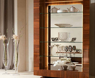 Открытая витрина Opera выполнена в стиле модерн. Витрина имеет геометрический узор выполненный из высококачественного шпона ореха, это придает стильный и элегантный вид. Витрина сделана из качественных пород древесины, дополнена шпоном ореха и покрыта глянцевым многослойным лаком. Великолепная витрина Opera от итальянских производителей с текстурой натурального дерева и лакированным покрытием, дополнит самый изысканный интерьер вашего дома.