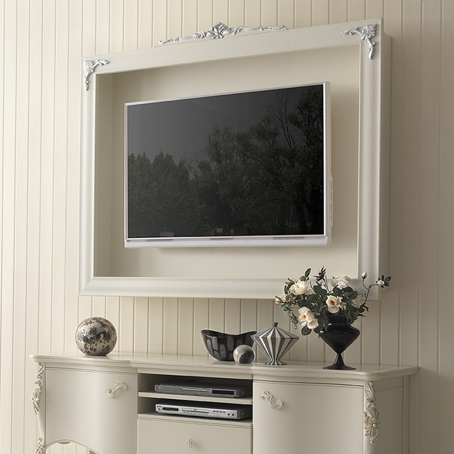 Панель настенная для ТВ классика Venere от мебельной фабрики GIULIA CASA в белом цвете - это утонченное украшение, предназначенное для современной гостиной. Модель украшена рамой с серебряными узорами.
