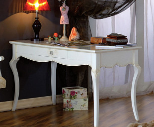Письменный столик Capri. Дизайн стол выполнен в классическом стиле, но адоптирован к современному образу жизни. Стол напоминает настоящее произведение искусства в области мебели. Вся мебель коллекции Capri сделана из высококачественного массива дерева и дополнена шпоном. В обработке мебели используются специальные методы, которые придают ей исторический характер. Стол выполнен в белом патинированном цвете. Элементы ручной работы, украшающие стол, являются результатом работы профессиональных дизайнеров и мастеров. По этой причине, каждый элемент стол является уникальным, что дает ощущение будто бы мебель выполнена по вашему индивидуальному заказу. Стол коллекции Capri наполнит атмосферу вашего дома изысканностью, элегантностью и принадлежностью сразу к нескольким эпохам.