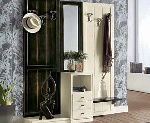 Прихожая выполнена в классическом стиле. Оснащена тремя выдвижными ящиками.