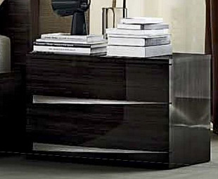 Прикроватная тумба для спальни Милфорд изготовлена из МДФ цвета "Венге" с глянцевыми фасадами, декорированными хромированными вставками. Имеет два выдвижных ящика для удобства хранения.