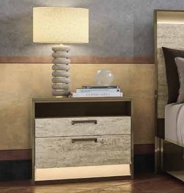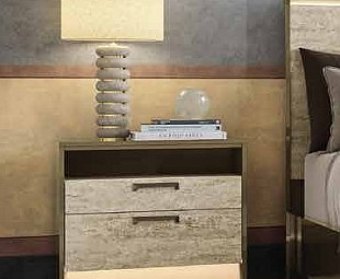 Прикроватная тумбочка c открытой полкой и двумя выдвижными ящиками.