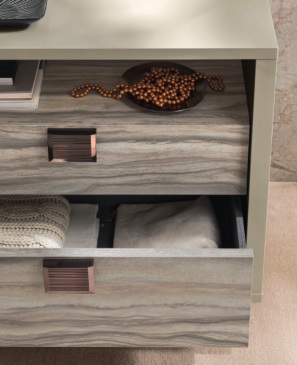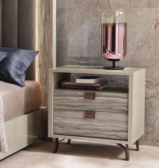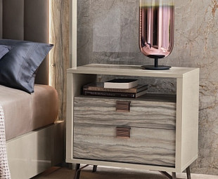Тумбочки представлены в двух вариантах, один из которых, кроме двух ящиков, включает открытый отсек.