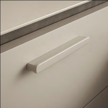 Столешница – стеклянная, окрашена в пудровый цвет в тон фасадов.