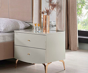 Тумбочка прикроватная "Валеско" с глянцевой отделкой в пастельном оттенке и золотистыми ножками придаст вашей спальне изысканный и роскошный вид.