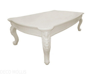 Столик журнальный из коллекции Monro. Элегантный прямоуголный журнальный столик на изящных ножках украшенных ручной лепкой. Столик сделан из массива березы, в отделке из натурального шпона корня оливы в белом цвете. Роскошный столик дополнит вашу гостиную, и станет изюминкой вашего интерьера.