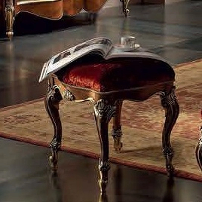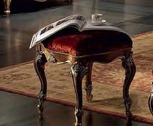 Пуфик на изогнутых ножках выполнен в классическом стиле. Декорирован резьбой.