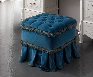 Пуфик белый классический Diamante с декоративной отделкой текстилем и мягкой обивкой бархатом с прострочкой гармонично дополнит гарнитур в спальне. Есть модификация в синем цвете.