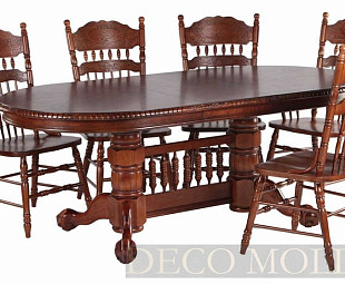 Раскладной стол из массива Кантри выполнен в стиле классика. Изготовлен стол обеденной группы Кантри из высококачественного массива гевеи. Классические формы, великолепное исполнение от малазийских производителей мебели, славится своим качеством и приемлемыми ценами во всем мире. Стол выполнен в цвете темный орех. Для отделки использовались высококачественные лакокраски, защищающие древесину от влаги, солнечных лучей и перепада температур.