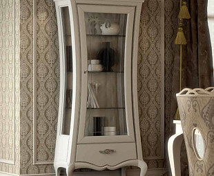 Оригинальный одностворчатый сервант La Dolce Vita – элегантное дизайнерское решение от итальянских создателей. Изделие, вышедшее из классики на причудливых изогнутых ножках, обрело осовремененный вид, благодаря облегченным стеклянным торцам и сдержанному декору. Такая модель придется по вкусу ценителям «породистой» красоты, желающим обставить свой дом стильно и самобытно.