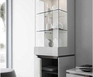 Сервант в гостиную Artemide добавит интерьеру яркой индивидуальности. Эта компактная одностворчатая модель с петлями на правую и левую сторону предполагает парное размещение для создания изысканного симметрично завершённого ансамбля.