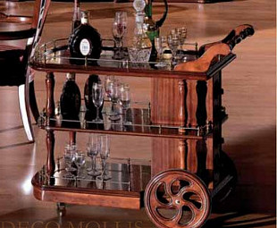 Сервировочный столик Сarpenter 223 на колесиках сделан из массива в отделке цвета орех, оборудован анти-опрокидывающимися бортиками - незаменимый предмет в любой роскошной гостиной.