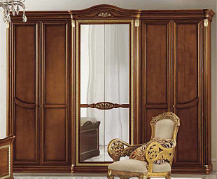 Шестидверный шкаф Capri фабрики San Michele. Шкаф выполнен в классическом стиле, лучшими итальянскими мастерами и дизайнерами. Шкаф сделан из высококачественного массива и шпона вишни в цвете вишня. Украшен шкаф элементами из сусального золота. Шкаф имеет шесть дверей и два зеркала.