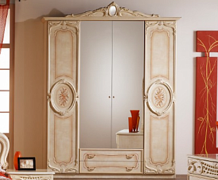 Шкаф 4-х дверный с зеркалом Розмари беж