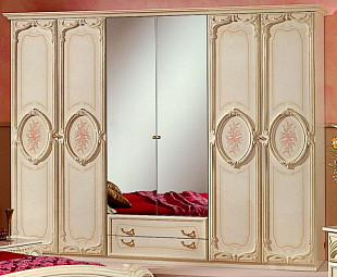 Шкаф 4-х дверный с зеркалом Розмари беж