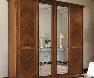Шкаф четырехдверный с зеркалами Lady фабрики Alf. Шкаф выполнен в классическом стиле, лучшими итальянскими мастерами и дизайнерами. Шкаф сделан из высококачественного массива и шпона ореха в цвете орех. Шкаф имеет четыри двери и два зеркала.