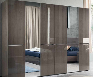 Шкаф для одежды Athena с шестью створками максимально вместителен и внутренне благоустроен. Помимо нескольких модулей с полками и перекладин под вешалки гардероб оснащен удобной кассетницей и нишей для чемодана.