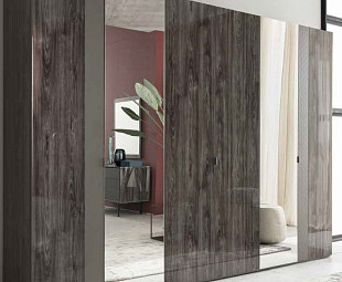 Роскошный шестидверный шкаф Frida – типичный пример современной многофункциональной модели, с продуманным до мелочей внутренним наполнением. Несколько вместительных секций превосходно зонируют пространство шкафа, делая содержание вещей более упорядоченным и аккуратным. Эффектный дизайн, простроенный на фактурном контрасте, одинаково выигрышен для изделия как с зеркальными створками на центральном фасаде, так и при полной отделке шпоном.