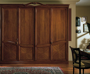 Элегантный шкаф Marie Claire располагает четырьмя распашными створками и являет собой великолепный образчик неподвластной времени классики. Стильный орнаментальный узор вкупе с фигурной резьбой и возрожденческими кистями, под которые стилизованы ручки, наделяет эту модель ярким самобытным характером. Дверцы шкафа закрыты глухим полотном, пропитанным фактурными ароматами дерева. Дополняет образ прекрасно организованное внутреннее пространство с множеством отделений, полок и секций, а также с потайным ящиком-сейфом для хранения ценностей.