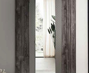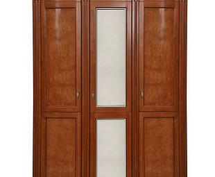 Шкаф представлен в двух вариантах – с зеркальным полотном на центральной створке и полностью шпонированный.