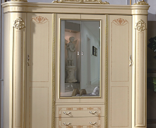 Шкаф для одежды с ящиками коллекции Изабелла разместит все вещи по полочкам. Производитель постарался создать максимальные удобства и предугадать пожелания хозяев. Две боковые дверцы, открывающие навстречу друг другу, можно использовать, как ширму для переодевания. Два выкатных ящика, и центральный отдел, с зеркальными дверями, позволят разделить одежду и белье по назначению.