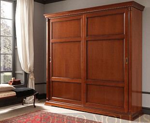Роскошный шкаф-купе без зеркал для спальни выполнен в классическом стиле, где каждый элемент подчеркивает изысканность и уникальность композиции. Сделан шкаф из массива в отделке из шпона вишни. Шкаф украшен высокохудожественной лепкой. Ручки выполнены в бронзовом цвете, а сама мебель в цвете вишня. Невероятно элегантный шкаф от итальянских производителей придаст вашему дому уют и шарм прошлых веков.