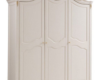 Шкаф прованс белый Веста имеет три распашных дверцы с наполнением из полок и ниши для вешалок. Изготовлен из натуральных пород дерева - массив бука белоснежного оттенка, декорирован резьбой с позолотой отдельных элементов. Сверху располагается изящная невесомая декоративная резная корона.