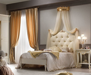 Красивая итальянская детская в классическом стиле станет отличным приобретением для вас и вашего ребенка. Богатое оформление в виде искусного растительного орнамента, который включает в себя обилие цветов и листьев различной формы, сквозь которые продета лента. Различные варианты сочетания материалов отделки, таких как сусальное золото и лак под цвет слоновой кости. Всегда высокое качество и стиль.