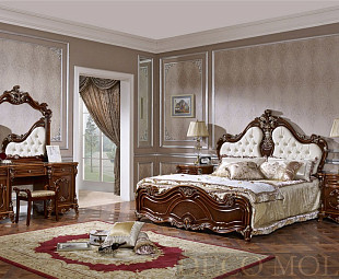 Спальня из МДФ Алекса. Спальня Алекса спроектирована итальянскими дизайнерами в классическом стиле барокко, с добавлением декоративных элементов. Мебель спальни сделана из высококачественного МДФ и покрыта водостойким лаком. Мебель спальни имеет теплый окрас, неповторимый рисунок и выполнена в роскошном цвете орех. В состав спальни входит кровать с мягким изголовьем, прикроватная тумбочка, туалетный столик с зеркалом и шкаф. Великолепная спальня Алекса дополнит интерьер самого роскошного дома и наполнит его теплом, атмосферой роскоши и уюта.