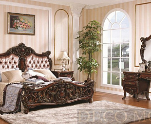 Спальня в стиле классика Шарлотта от китайских производителей является не только частью интерьера, но и современным произведением искусства в области мебели. В состав спальни входит вся самая необходимая мебель, это кровать украшенная высокохудожественной искусной резьбой ручной работы, прикроватная тумба, туалетный столик с зеркалом и шкаф. Роскошные формы, плавные линии мебели спальни Шарлотта украшает стильная резьба ручной работы. Мебель спальни выполнена в цвете орех. Сделана мебель спальни Шарлотта в классическом стиле из высококачественного МДФ и дополнена лакированным ДСП. Мебель спальни Шарлотта наполнит ваш дом теплом, атмосферой роскоши и уюта.