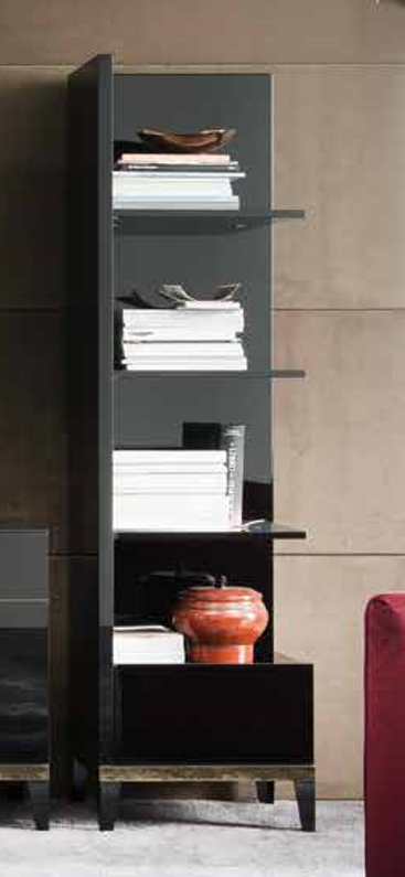Стеллаж для книг открытый Mont Noir может стать хорошим обрамлением тумбы под телевизор или же отдельным предметов интерьера. Три вместительных ниши для элементов декора, отделка шпоном дерева Кото в цвете "Черный глянец". Изысканный и роскошный, как сама Италия.