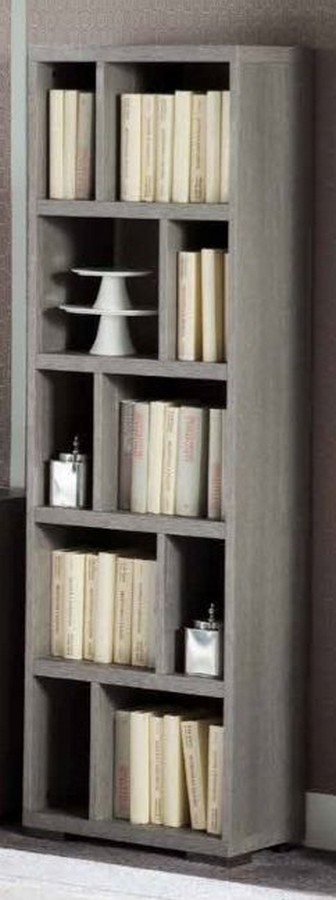 Стеллаж для книг узкий Tivoli прекрасно дополняет тумбу под телевизор или может использоваться как отдельный предмет интерьера. Оригинальная отделка шпоном дерева Koto в цвете "Серый дуб матовый". Интересное расположение открытых ниш разного размера, для гармоничного распределение элементов дизайна.