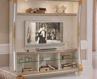 Стенка под ТВ Liberty фабрики Arredo Classic. Стенка сделана из высококачественного МДФ. Стенка выполнена в цвете слоновая кость с добавлением золота. Стенка имеет множество полок и отделений.