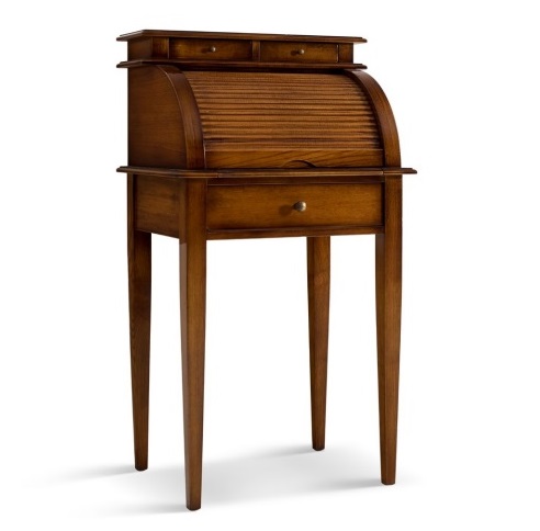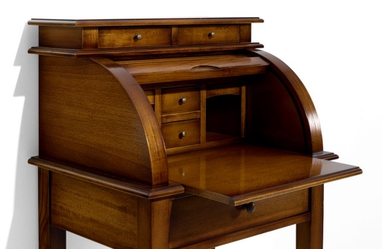 Имеет выдвигающийся столик и пять ящиков – два в верхней части, два по центру и один под столешницей.