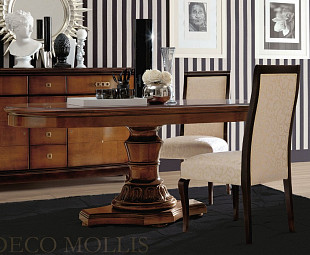 Элегантный стол, выполненный в классическом стиле, в котором присутствует гармоничность, изысканность и уникальность. Нежные тона мебели прекрасно сочетаются с яркими элементами в виде элегантных ручек. Мебель покрыта высококачественным лаком, который защитит от старения, солнечного света и перепада температур. Мебель и отделка сделана из исключительно высококачественных материалов. Нестандартная форма мебели подчеркивает и придает индивидуальность всему интерьеру дома. Мебель выполнена в цвете мока с вишней. Роскошный итальянский стол дополнит интерьер любого самого изысканного дома.