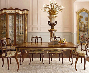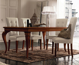 Стол обеденный итальянский вишня Riva изготовлен из массива черешни в классическом стиле, защищен экологичным лаком на водной основе. Массивная столешница имеет прямоугольную форму с гранеными краями и ступенчатой кромкой. Украшена перламутровыми ромбами в технике "интарсия". При необходимости, может быть раздвинута, увеличив тем самым общую полезную площадь. Две пары изогнутых ножек, красивых и изящных, украшены мастерской резьбой. Легкое патинирование придает эффект благородной старины.