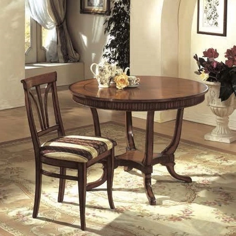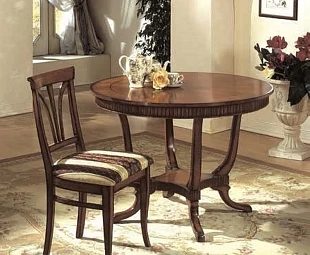 Круглый обеденный стол на фигурном резном основании выполнен в классическом стиле.