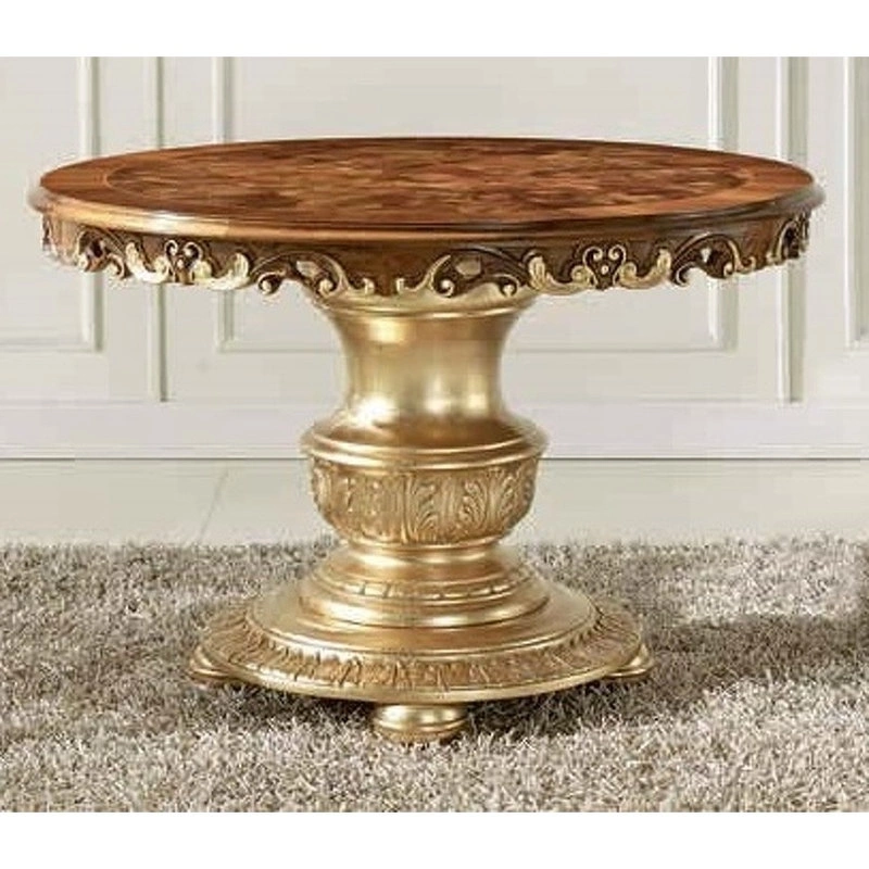 Круглый обеденный стол на фигурном основании выполнен в классическом стиле. Резные детали отделки подчеркивают оригинальность модели.