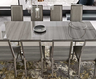Обеденный стол Iris располагает большой прямоугольной столешницей и двумя устойчивыми опорами оригинальной конструкции. С помощью инновационной раздвижной системы изделие раскладывается, предоставляя возможность рассадить за столом большее число людей (до 10 персон).