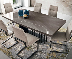 Обеденный стол Olimpia – шикарный вариант для просторной гостиной. Большая нарядная столешница легко раскладывается при помощи современного раздвижного механизма, что делает модель пригодной как для повседневной эксплуатации, так и для проведения шумных застолий. Особым характером изделие наделяет эксклюзивная компактная опора, выполненная из дерева и металла и расположенная посередине, за счет чего достигается комфортное размещение за столом всех участников трапезы.