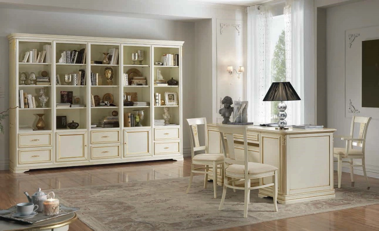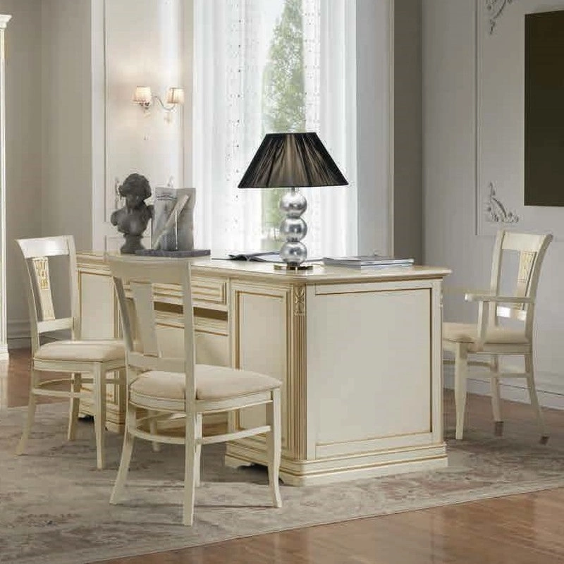 Письменный стол выполнен в классическом стиле. Оснащен выдвижными ящиками. Декорирован резьбой.