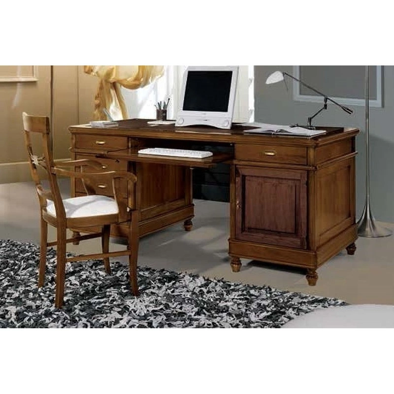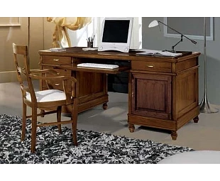 Письменный стол на фигурных ножках выполнен в классическом стиле. Оснащен ящиками, дверцей и выдвижной полкой.