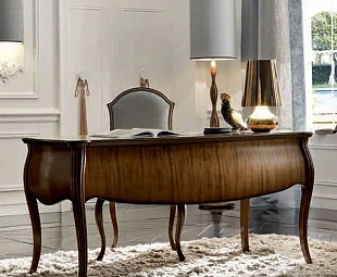 Письменный стол на изогнутых ножках выполнен в классическом стиле. Оснащен выдвижными ящиками.
