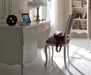 Письменный стол на изогнутых ножках выполнен в классическом стиле. Декорирован резьбой. Оснащен выдвижным ящиком и отделением с распашной дверцей.